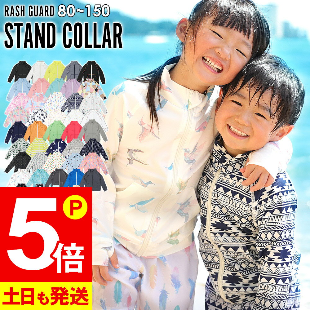 フード付き スタンドカラー ラッシュガード キッズ 長袖 ジップ ジップアップ フルジップ 女の子 男の子 水着 Upf50 上着 アウター 子供 小学生 プール 海 水遊び アウトドア キャンプ 学校 パーカー 日焼け止め 虫除け アウトドア 夏 柄 無地 指穴 90 100